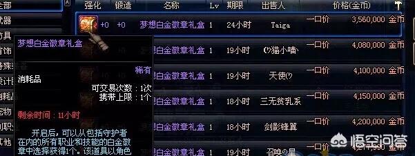 这种梦想的白金勋章礼盒可以选出多种你想要的白金勋章,只要有了它你就相当于毕业了,那时候才400万,对于那时候的换装并不流行,什么技能勋章啊啥的,都懒的去看了,都放在仓库里存着了,根本不拿它当回事,放到现在这种好东西已经绝版了,拍卖行上已经看不到了,只要在春节套或者国庆套这样的福利活动中才能看到白金勋章的身影,而且价格不菲,花上千块钱去买一个礼包你才能得到这么一个白金勋章,想想当时真的很后悔。现在想要获取白金徽章需要分解天空套才能得到这种材料,哎,除非土豪像平民玩家是根本玩不起的。