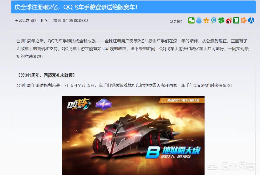为什么QQ飞车手游公测一周年的活动要在王者荣耀官网发布