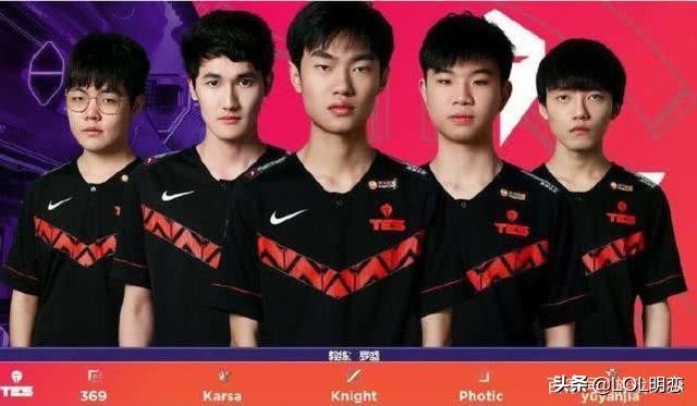 TES战队由中单左手Knight、上单369、打野Karsa、ADC选手JackeyLove(喻文波)以及辅助选手yuyanjia和另一位辅助QiuQiu加一位替补上单Moyu组成,这些战队队员国籍都为中国籍,所以TES战队是全华班。