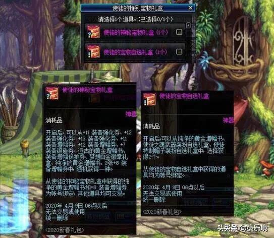 使徒的特别宝物礼盒是不可交易的道具,但从中开出使徒的神秘宝物礼盒有概率获得可交易道具!