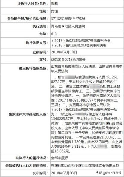 2016年秋天,我们在青岛遇到一起交通事故,一人死亡,一人重残,当时这个肇事者也是在判决后玩失踪,一分不赔。进入执行程序后,执行局给她发的执行通知书等全部拒收,这样,法院执行局九江这个老赖列入失信被执行人黑名单,并且限制高消费。