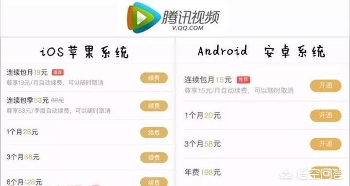 为什么在安卓手机和苹果手机开通爱奇艺会员的价格不一样