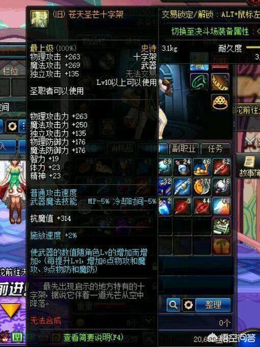 其实这把武器的等级为10级,但是带上霸王契约减了10级装备限制之后,也就是说刚出生的一级小号就可以穿戴,虽然这把苍穹圣芒十字架不加技能,但是武器属性也是非常逆天的,武器可以随角色等级的增加而增加属性,没提示1级可以增加6点物魔攻和9点物魔防,也就说升级到95级最高可以增加570点物魔攻和防御力。