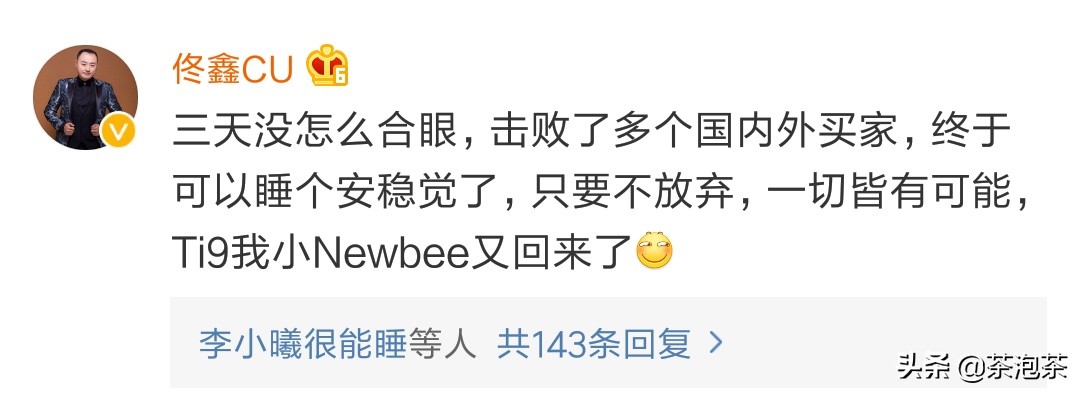Newbee战队预选失利,这支自建队来每年都能进入TI的队伍自然心有不甘,成为各个竞争赞助商的有力候选者,最终力压群雄,Newbee战队ceo佟鑫拿下Forward Gaming的赞助权,将代表Newbee进军TI。