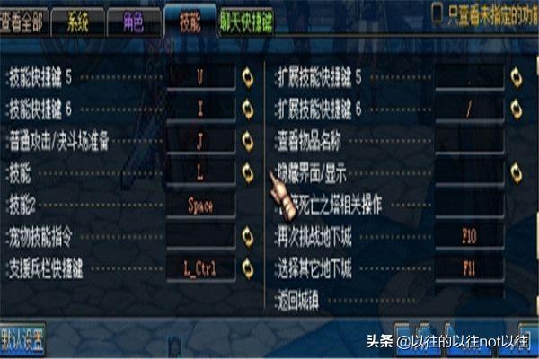4.另外“Shift”也是建议必须使用的键位,可以设置自己最常用或者可以无敌解困的技能,如裂波斩或者嗜魂之手什么的(拿鬼剑士来说),“TAB”的召唤支援可以用“Ctrl”替代。