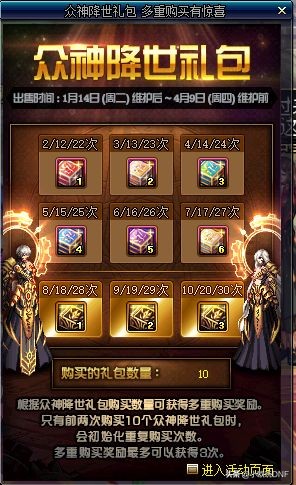 但是,今年的“众神降世”春节礼包,多买多送模式发生变化,如图所示,礼包变为10套3轮模式,玩家极限最多可以购买30套春节礼包,获取三轮奖励,可以打造3个角色。