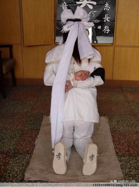人死后孝子脚穿分男左女右的折口孝鞋,披麻戴孝。家族和亲朋都要去悼孝,既然是悼孝就得戴孝,戴孝者还要按亲疏远近发放长短不一的孝布顶在头上,戴孝免灾已成当地共识。