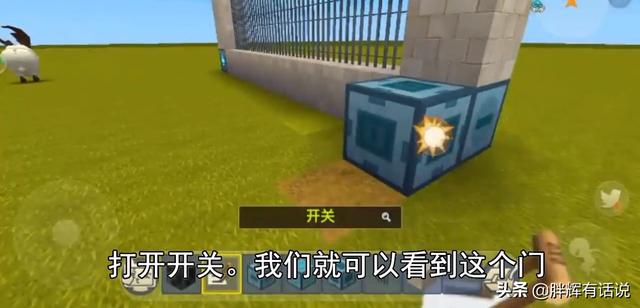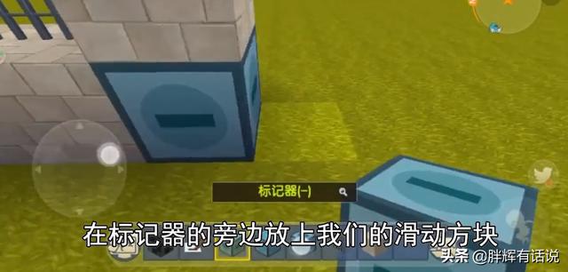 第四步,在标记器的旁边放上滑动方块,将他们连接起来,按上开关。打开开关我们就可以看到这个门就自动地划开了。