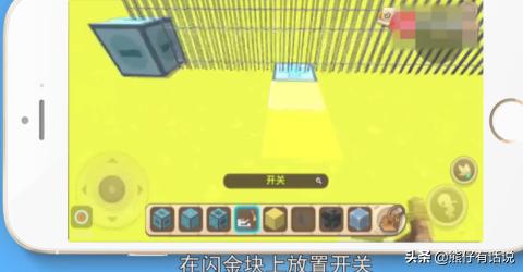 第五步:在闪金块上放置开关,这样即可控制门的开关。