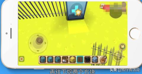 第四步:再往下挖两个方块,放上滑动方块和闪金方块。