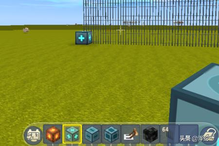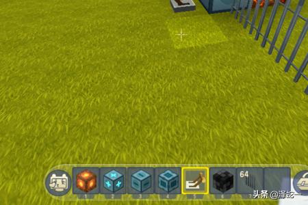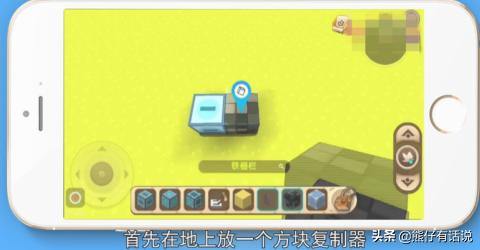 第一步:在地上放一个方块复制器后,在上方放上铁栅栏。