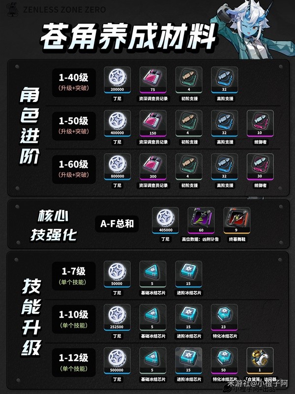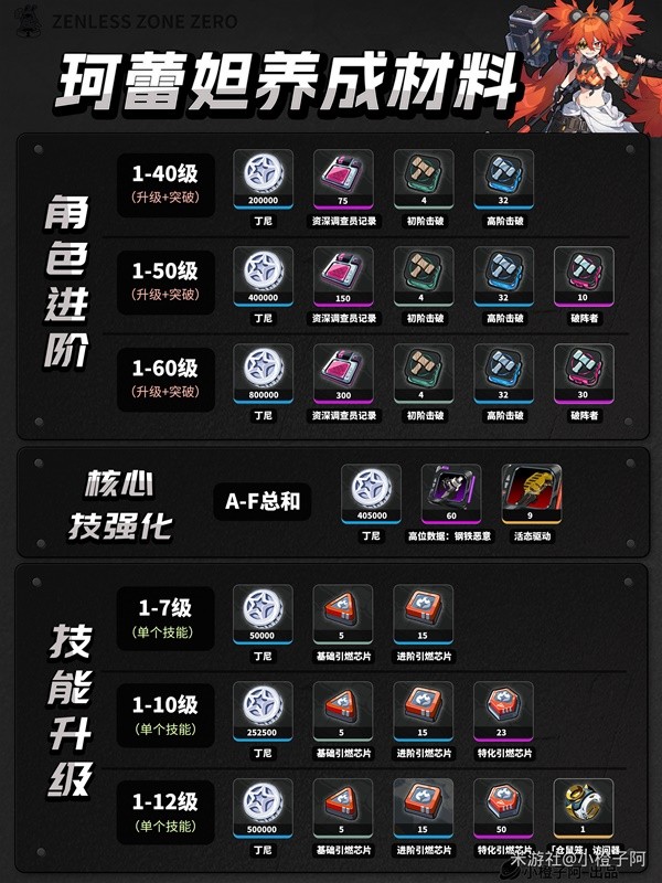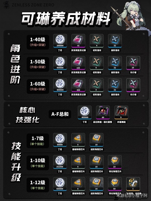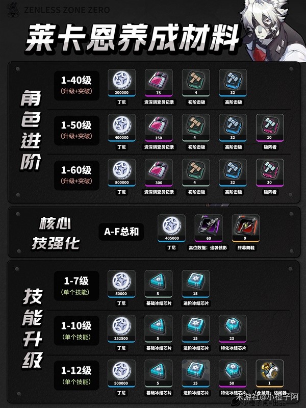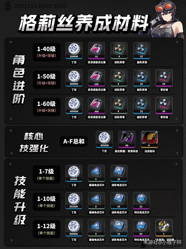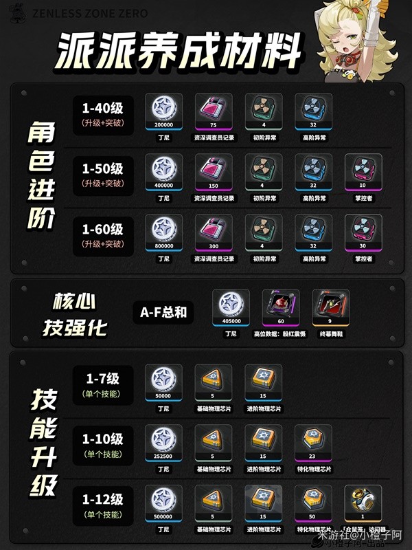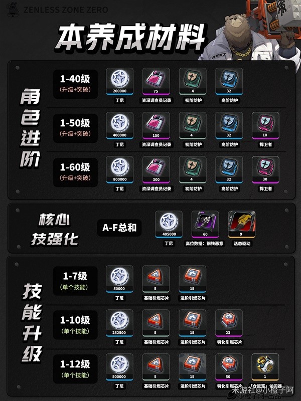 《绝区零》公测已经开启,在1.0版本中有很多的角色,那么这些角色的养成材料都是什么呢?下面请看由“小橙子阿”为大家带来的《绝区零》1.0全角色养成材料统计,希望对开荒的小伙伴有所帮助。