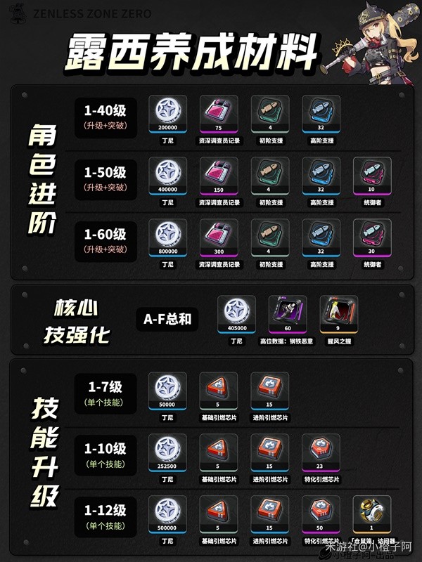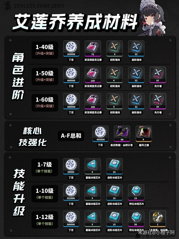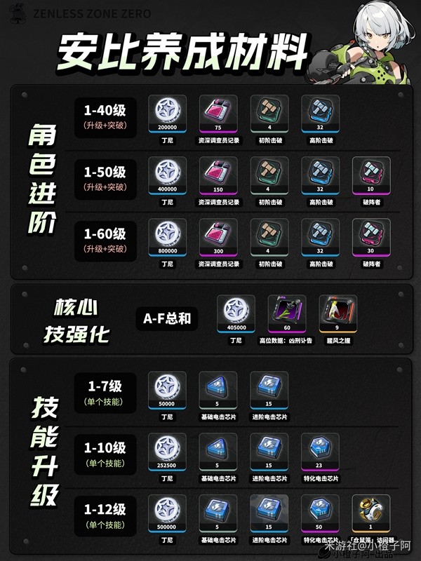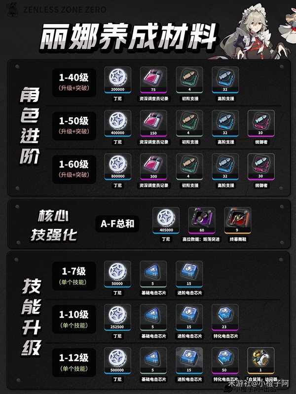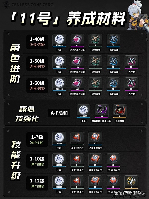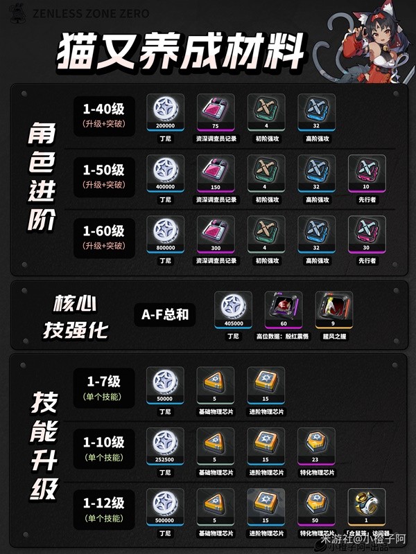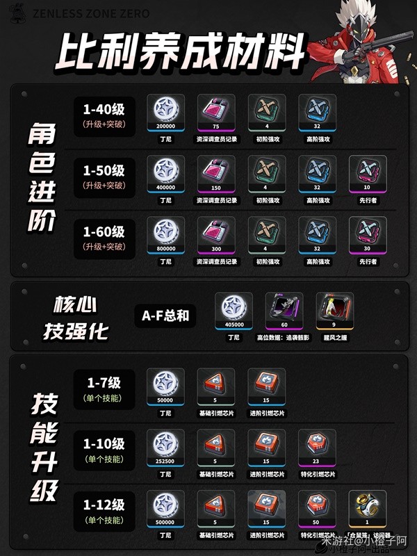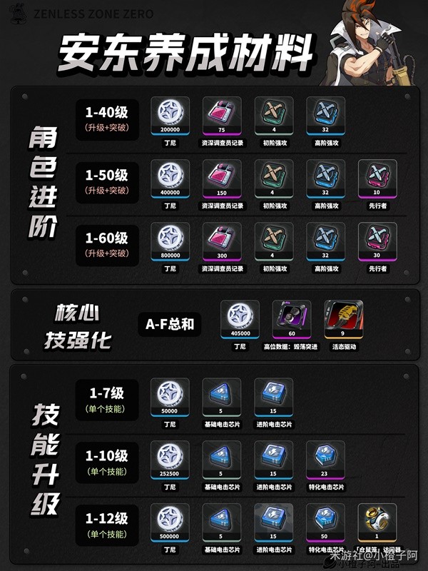 《绝区零》公测已经开启,在1.0版本中有很多的角色,那么这些角色的养成材料都是什么呢?下面请看由“小橙子阿”为大家带来的《绝区零》1.0全角色养成材料统计,希望对开荒的小伙伴有所帮助。
