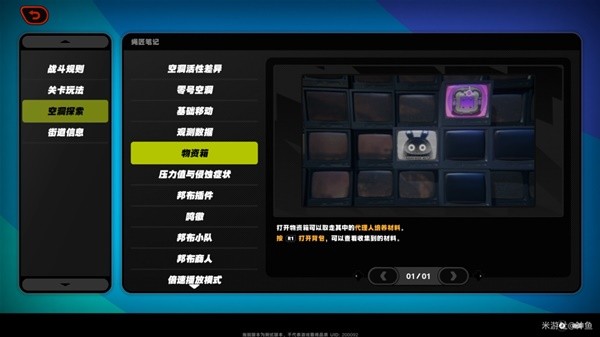 在空洞中可获得「物资箱」,内含代理人(角色)培养材料,按R1(键盘B)打开背包,可以查看获得的材料。