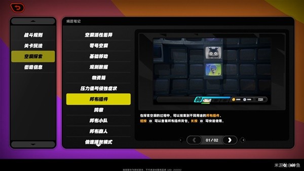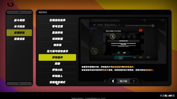 在空洞中可获得「邦布插件」,短按「口」可以查看插件背包(最多可存5个邦布插件),长按「口」可快速使用当前显示的插件。