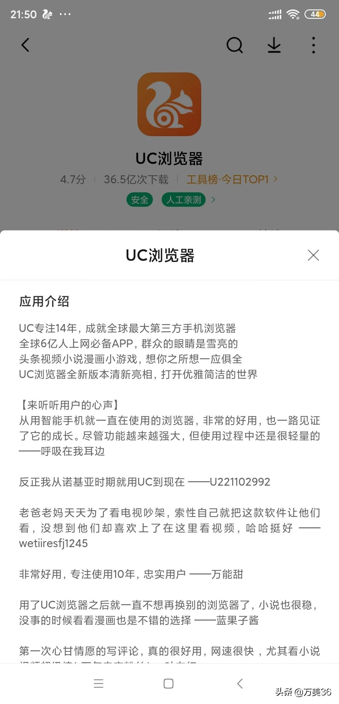 手机搜索一般都用百度和UC浏览器,但百度广告太多,我不太喜欢用百度。UC是一个老的品牌,记得十几年前还有UC号聊天,和QQ号一样。后来败给了QQ,聊天软件没有发展起来,然后UC就专注发展手机浏览器,得到了很多用户的喜爱。