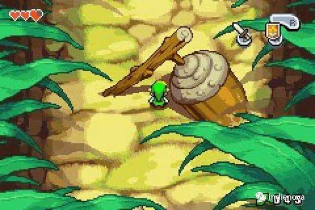 这是我最喜欢的塞尔达游戏了,因为这一作的流程短,难度简单,可以比较轻松的通关吧,画面非常的卡通,在GBA上面来说算是非常优秀的画面了,设定也很有趣,变小之后的世界很奇妙,迷题的设定也比正统的简单了点,据说这一版是外包给卡普空制作的不是任天堂做的。