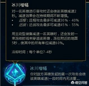 冰川增幅:对敌方英雄发起的攻击会使该英雄减速(45%—55%)减速效果会装持续期间不断增强。