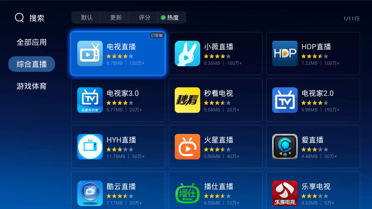 打开当贝市场——影音——电视直播,就能找到电视直播应用。也可以直接搜索找到。