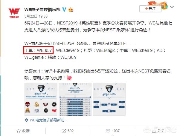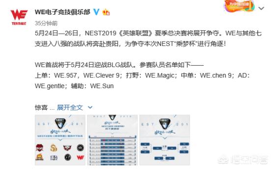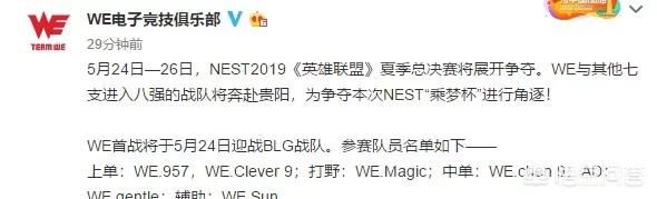 刚看到这个标题,我被吓了一跳,特意去WE微博去看了一下。原来这份出战名单是来自NEST”乘梦杯“ 迎战BLG战队8强赛中的名单。作为一名英雄联盟的老玩家,我来说说说我的看法