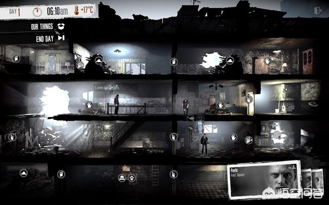 当战争袭来的时候,玩家扮演的几个角色不得不蜷缩在一个破烂的楼里苟且偷生,每天不得不出去冒险,去看看有没有能让自己活下来的资源。