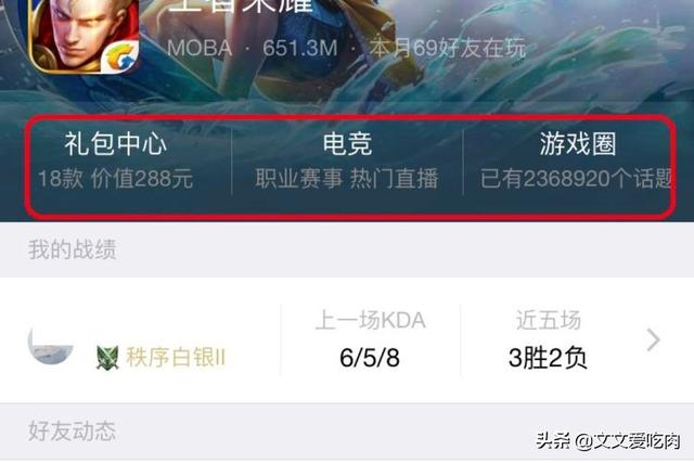 3、进入王者荣耀,可以看到有礼包中心,电竞,游戏圈,还可以查看自己的战绩等。