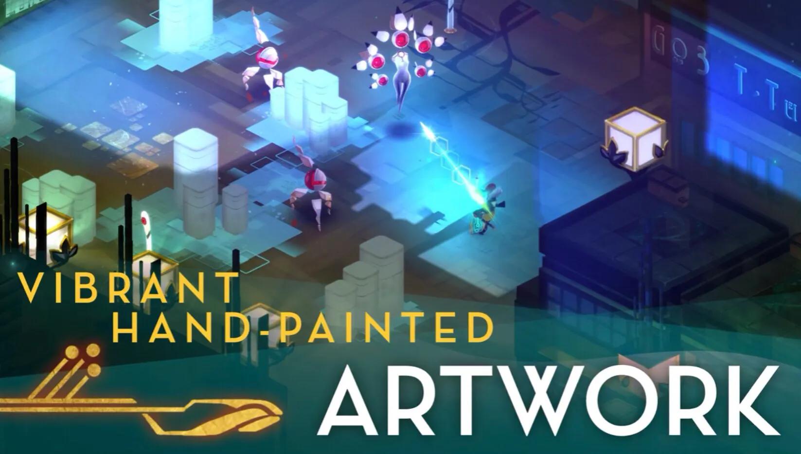 晶体管,要钱,画面和音乐很好,每一帧都可以当桌面,我发的图太失帧了,游戏画面比图强很多,音乐听了让人沉迷其中,有段时间上去玩就是点击听女主哼音乐,玩法也非常有趣,技能组合搭配,唯一的缺点就是剧情太短了,结局让人有点难以接受,但我还是各种技能树加天赋搭配玩了好几遍。