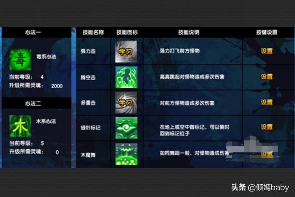 4.也可以学习木系技能但是毒系伤害高,木系连击高,其实学哪一样都行,木系可以用来打小兵,毒系可以用来打boss。