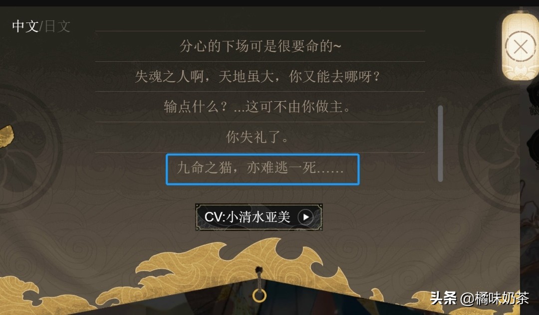 有意思的是,不知火舞新皮肤魅语的台词,跟eStarPro中单Cat的貂蝉的FMVP皮肤猫影幻舞撞了,魅语台词中有句台词是这样的,“九命之猫,亦难逃一死”,而猫影幻舞中有句台词称“猫有九命,唯独一心”,作为Cat最喜欢的两个法刺英雄,也是挺有趣的!