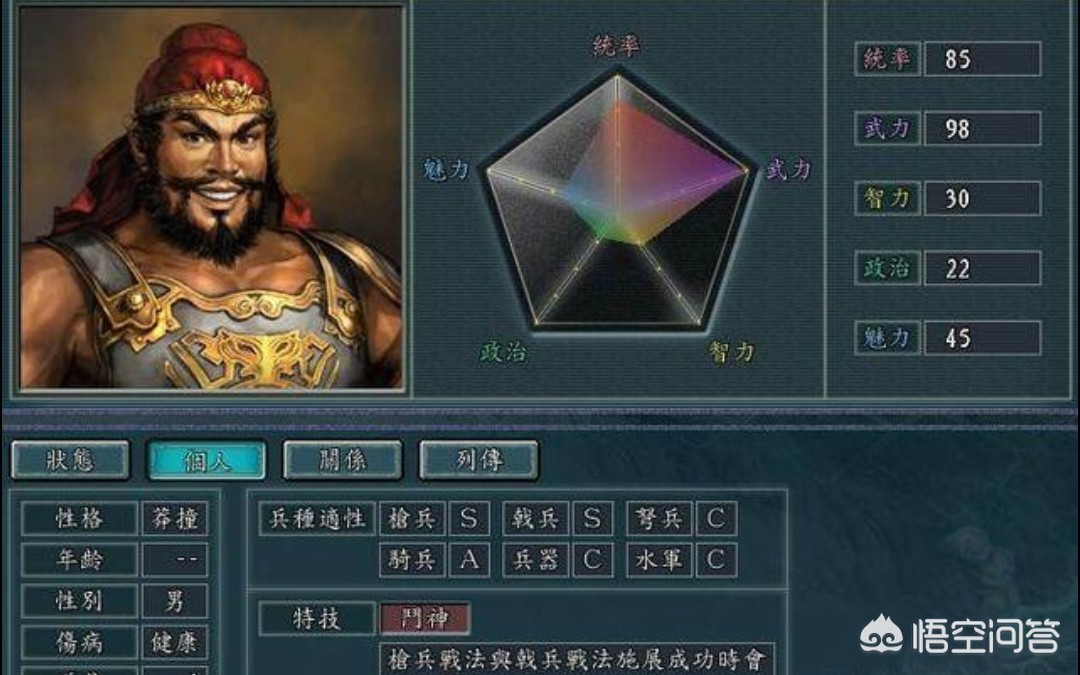 仔细区分一下就是,一个上面有两个“日”,一个上面有两个“王”。而张飞的特技是“鬥神”,所以以后不要认成门神了。《三国志11》中还有一些很难认的字,比如我以前就认错了汝南太守孔伷的名字,把“伷”(zhou四声)读成了柚。