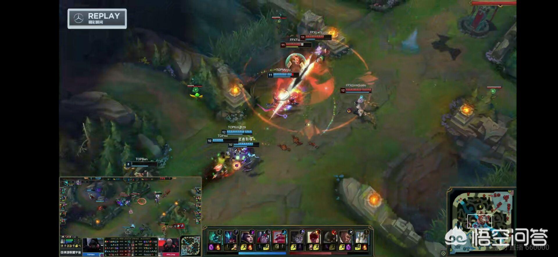 第二波的时候,人马和TOP的打野熊熊是在上路2打2没有打过,问题还是出在了人马的身上,演的特别的明显,一下就看出来是打野来抓,盲僧就开始蹲在草丛打后手,FPX拿下击杀,这时候打野和上路是劣势很大,下路的韦鲁斯和布隆的组合线上也稳住了,但是10分钟后也没有稳住 ,对线上出了问题,上下两路被TOP战队推掉,人马直接崩线!