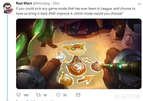 近日,官方设计师推特表示:如果你可以选择任何一种曾经在LOL中出现过的游戏模式,并选择让我们回归并对其改进,你会选择哪一种模式?