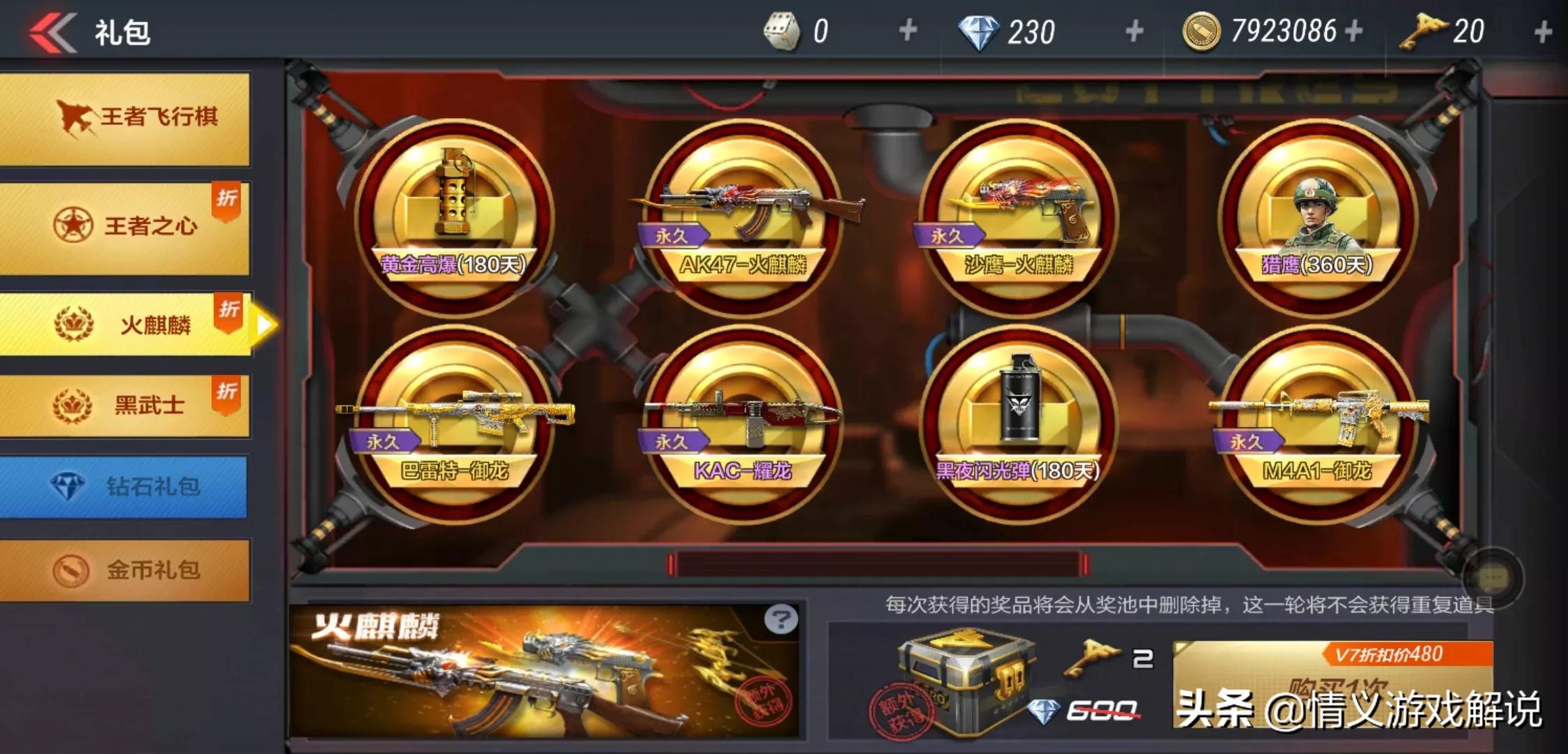 大家可能都知道AK47-火麒麟是来自于cf手游火麒麟礼包开出来的,那么火麒麟礼包购买的价格是随着购买次数不同变动的,cf手游火麒麟礼包中的AK47-火麒麟多少钱能得到?下面就给大家算一下cf手游火麒麟礼包价格表,看看多少钱能得到cf手游火麒麟礼包里的AK47-火麒麟。
