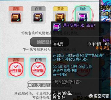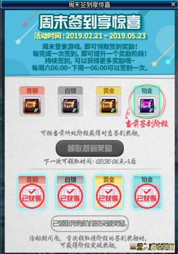 但是,这个活动时间要持续到5月23日,今天才3月25日,还有好几周时间!昨天我刷完图后,习惯性的点开了周末签到按钮,神奇的一幕发生了!第四阶段铂金奖励被激活了,可以领取铂金周末惊喜礼盒,我上周才领了的啊!看来,这个礼盒是可以每周重复领取的!