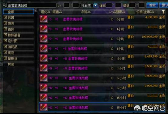 因为拍卖行并没有成品+15的,所以这位玩家只能自己强化了,虽然这件装备属于低级装备,但是因为武器幻化的缘故,所以这件装备的价格并不便宜,一件要400多万呢,为了保证强化的成功率,玩家买了好几把,同时也买了很多垫子,要知道强化+15并不是一件容易的事情啊。
