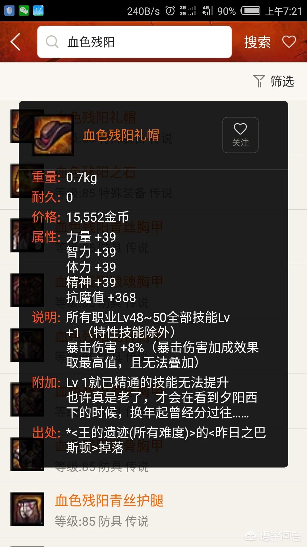 其他传说套装属性感觉没有血色好,但是也是可以选择的。