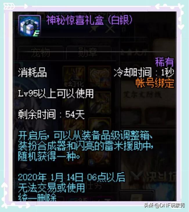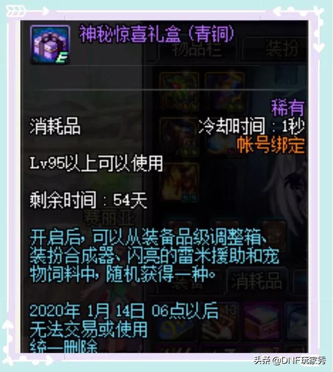 (1)第一周青铜神秘惊喜礼盒,可以从“品级箱,装扮合成器,雷米药,宠物饲料”中随机获得一种,秀儿猜测,大概率为宠物饲料。