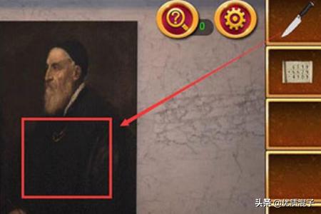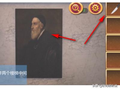 5、用小刀割开两个楼梯中间的画,根据提示来调整,调整后拿到钥匙开门就逃离密室逃脱1第8关啦。