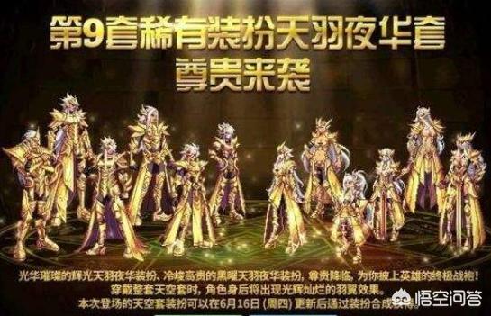 天空套不是很多样子,是更新了,到现在为止国服有三套天空,前两套已经下架了。现在合只能合出现在这套的样子。每套天空都有两个颜色的,黄金的比较稀有,有1/3几率出。只是颜色不一样。还有1/9的几率会出透明的,也就是克隆稀有装扮。