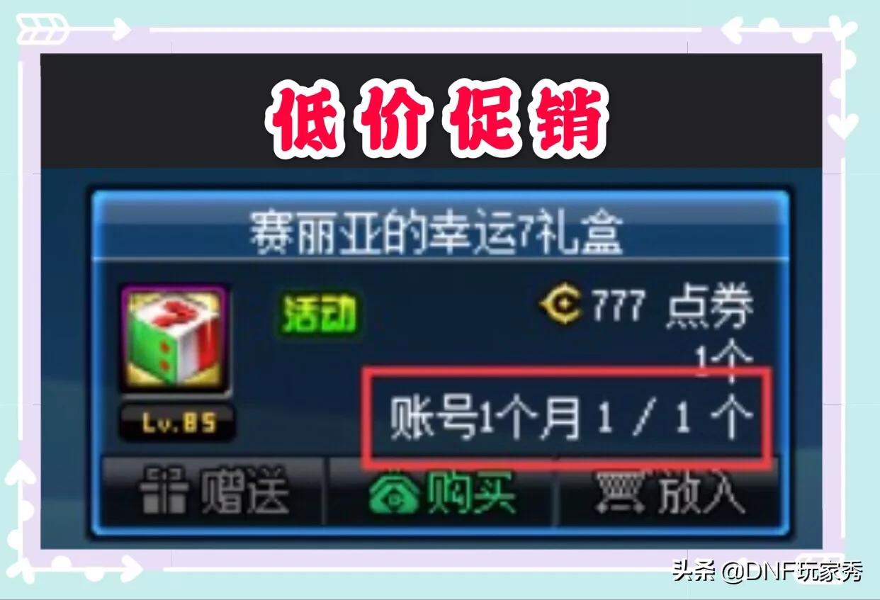 DNF更新售价777点券赛丽亚礼包,保底10个盒子,值得购买吗