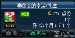 此次幸运7礼包,和以往一样,也是低价模式,777点券,也是只能点券购买,相当于人民币7.77元。让玩家觉得这点蚊子腿花费,无所谓。
