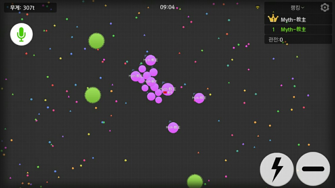 首先游戏非常简单,简单到上手即会。玩家只需要通过触屏移动控制游戏中的圆球吃场景中的小球来使自己变大,同时躲避比自己强大的角色进攻,尽量吃掉比自己小的角色让自己变大。不过自身越大,移动速度就越慢。随着你实力的增强,球会越来越大,游戏设计了两种方式来帮助你“减肥”。一种是放弃一部分让自己变小,另外一种方法就是把自己分成多个小部分。而且游戏还支持语音。虽然说游戏的内容不多,但是真正玩起来玩法还是很多的。及时的削减自身的部分可以提升移动速度利于逃跑,在团队战中还可以帮助同伴加强实力。如果球实在是大的无法移动了,不妨试试分身,同时控制多个球分兵攻伐也是个不错的选择。