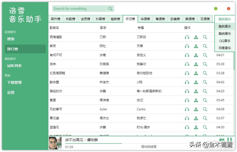 这里我可以大力推荐你使用这款音乐软件:洛雪音乐助手。