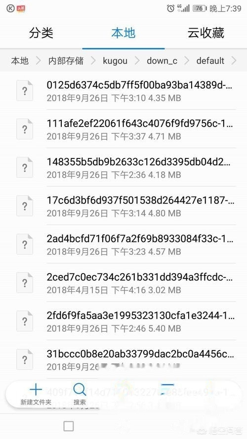 直到这首歌放完,就可以退出它了,现在打开文件管理器,找到文件夹sdcard/KuGoo/dom_c/default,然后在这个文件里面可以看到里面有个后缀是kgtmp的文件,这个文件就是刚刚缓存的歌曲。