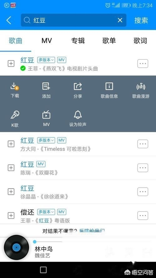 接下来就去搜索自己想要下载的付费歌曲了,我以下载“红豆”为例。