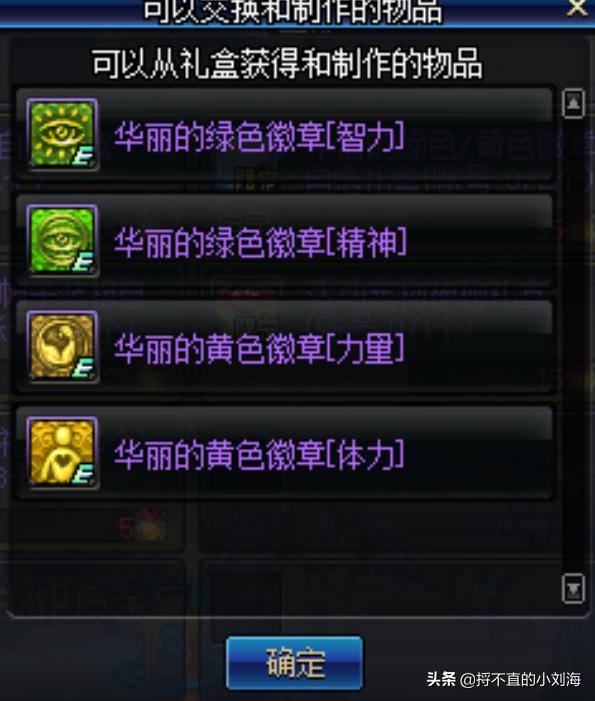 然后是黄色力量或体力和绿色智力徽章,这个对于大家可以说是非常有用的。这些徽章可以带来实打实的伤害提升,而且这些徽章是分解时装得不来的,只能靠活动获取。之前出过好几次黄色力量徽章的活动,相信很多一直玩的玩家大号四个黄色徽章孔都毕业了。不过这些可以给小号呀,还是很不错的。
