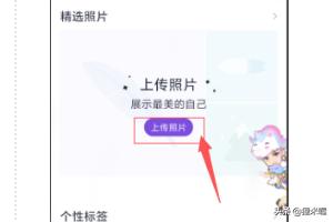 3进入qq个人主页,向上滑动界面,找到“精选照片”那一栏下面的“上传照片”按钮并点击
