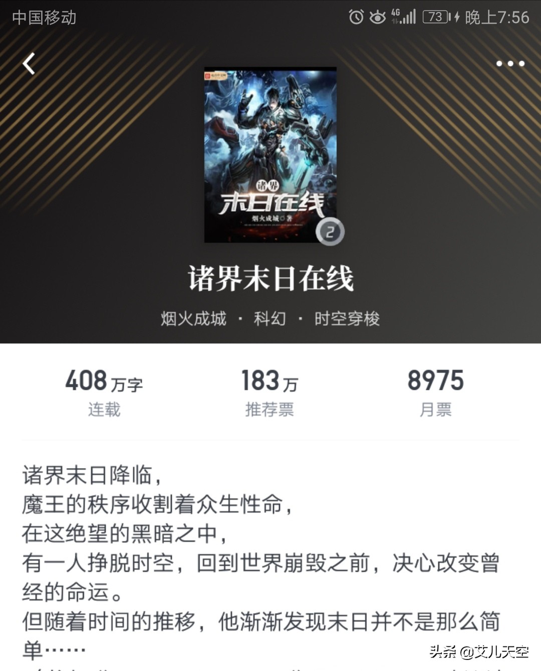 这本小说在起点的人气颇高。游戏入侵现实,高武科幻对垒仙侠修真,末日突然降临,各个世界交错纷呈。