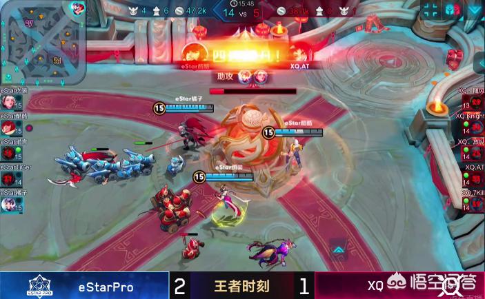 XQ前期连续几次控制了estarpro的红区,几乎是奠定了前期大优势的局面。而estarpro这边,因为裴庆虎前期被针对的太惨,让其先去去帮诺言的程咬金下路打开局面,通过一番努力之后,成功推掉了XQ的下路塔之后,XQ的节奏慢慢就乱了,没有很好地运用前期的优势更好打开局面,反倒是一步步经济被逼近并且反超。随着一波团战的胜利,estarpro拿下了大龙,局面开始往estarpro这边偏移了。最后一波团战感觉就是XQ这边沟通出现了问题,刘邦竟然没有选择传回去团战,导致XQ正面战场四打五被大败,最后剩下一个刘邦几乎无用了,esterpro直接一波推荐了水晶,最后这一波团战赶紧刘邦必须要背锅啊!而最后一波团战橘子的花木兰也是真的是天秀,草丛中直接一套秒了阿泰!