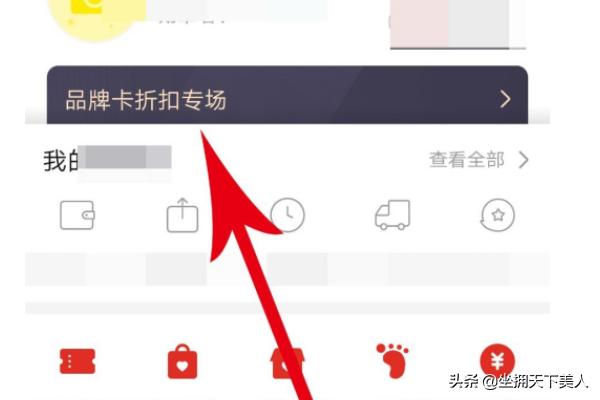 3.进入到个人中心页面后,注意查看,在头像下方找到“品牌卡折扣专场”并点击,位置见下图